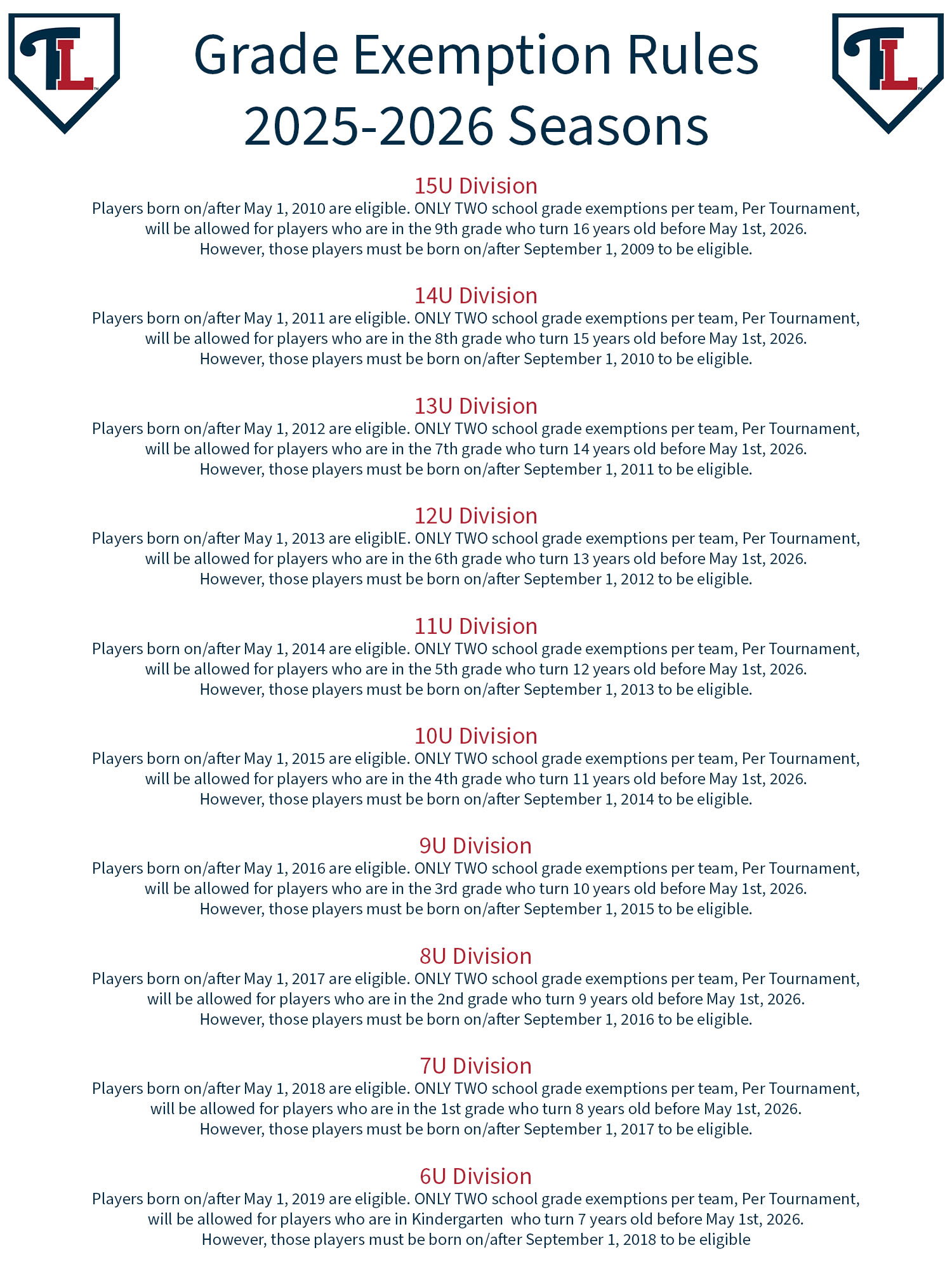 Age Exemption Chart